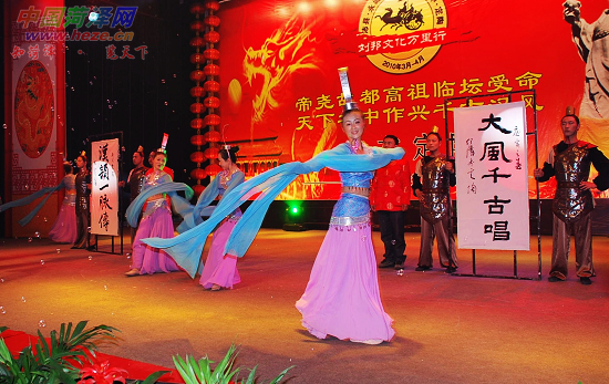 中国菏泽网消息4月2日,“刘邦文化万里行”联谊团一行80余人抵达定陶,举行了《千古大风万里情》文艺演出和万人签名活动,并参观刘邦登基的“受命坛”——管堌堆等历史遗址。