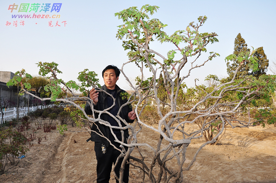 古今珍品牡丹园农艺师在护理百年牡丹树