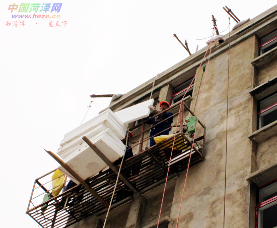 “做我们这行最重要的就是安全。”吕令川说,每次作业前,他们都要先检查安全设备,“有一点瑕疵也不能开工。”吕令川干外墙保温已经有4年了,在他的带领下,他们村里现在有10多个人都在从事这个行业。“我是在洛阳学的技术,两年前看到咱们菏泽建设步伐加快,于是就回来了,也为家乡的建设做点贡献。”吕令川憨厚地对记者说。