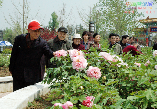 中国菏泽网消息 4月25日上午,记者在曹州牡丹园碰到了省地震局28位离退休老干部。