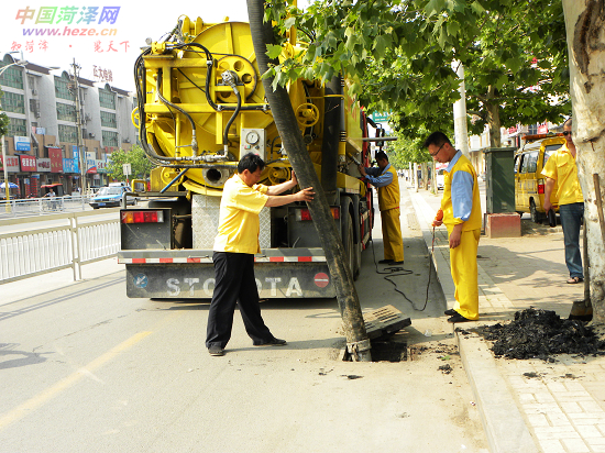 为保证汛期排水顺畅,市区6000余座下水道落水井近期都将进行清理,预计6月9日前可清理一遍。图为市政管理人员用吸污车清理下水道落水井。