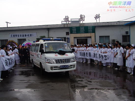 中国菏泽网消息 20多年如一日义务导医的刘淑静老人因病去世,6月3日清晨,各界群众数百人自发到菏泽牡丹人民医院送别。