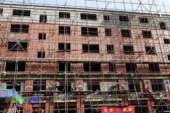 8月18日,在中国牡丹商贸城三期工程建设工地,工人们正在进行装修工程施工。据了解,中国牡丹商贸城规划占地1500亩,计划总投资100亿元,2006年动工兴建,前三期工程共投资30多亿元,一期、二期为花都百货大市场项目,建筑面积16万平方米,目前市场运营状况良好。三期工程建筑面积14万平方米,目前土建工程基本完工,工程已进入装修阶段,计划在元旦前建成营业。四期为集商贸、物流、居住、休闲、娱乐、服务为一体的城市综合体项目,规划建筑面积为130万平方米,入户丈量拆迁工作已开始进行。