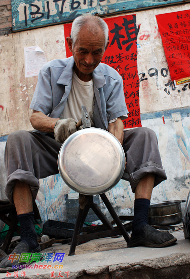 中国菏泽网消息 日前,老孟推着三轮车来到市育才路上,刚支好补锅摊,就有人送来一口铝锅。剪下旧锅底,镶上新锅底……十几分钟后,他就将铝锅就补好了。“现在补锅的少了,锅坏了只能扔掉,来老孟这儿,补一次只要几块钱,比买新锅省多了。”前来补锅的市民王大娘说。