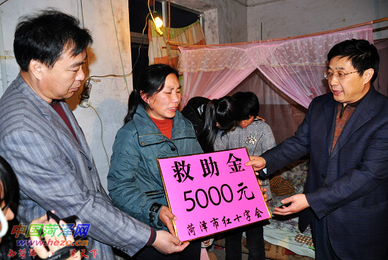 中国菏泽网消息 11月19日下午,省、市红十字会有关负责人和深圳华大基因研究所工作人员,来到“血癌女孩”吕晓鑫家中,市红十字会送来5000元慰问金,医务人员为小鑫采集了血样,由深圳华大基因研究所带回进行高分辨匹配。