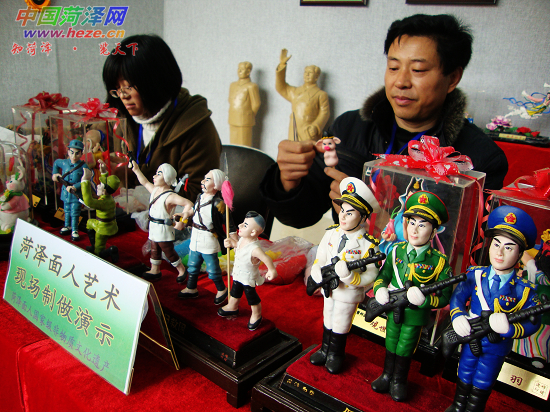 我市民间艺术源远流长,丰富多彩,独具魅力,像黑陶、瓷刻、面塑、剪纸、织锦,还有活灵活现的根艺、木雕、布艺娃娃,意趣无穷的麦杆画、民间木版年画、十字绣等等,门类多样,不胜枚举。民间艺术来自民间,根植乡野。作品题材广泛,反映了菏泽的古风古貌;作品造型入骨三分,充分表现了民间艺术家的才气。民间艺术人才众多,喜爱民间艺术的人更多,这是其长盛不衰的根本所在。