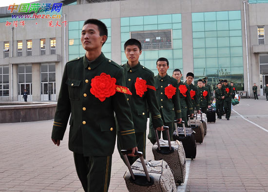 11月25日下午和晚上,武警菏泽市支队在火车站举行隆重仪式,分两批欢送支队今冬170余名安徽安庆、湖南娄底和河北衡水籍等地的老战士荣归故里。25日下午3时30分,菏泽火车站里悬挂着醒目的标语,广播里反复播放着为老兵送行的歌曲。退伍老战士们统一穿着没有了肩章领花的军装,胸前带着光荣的大红花,依然精神抖擞地整齐列队,成为一道亮丽的风景线。支队领导同志一一与老战士们握手话别,互道珍重。