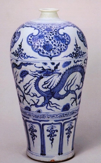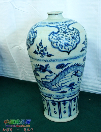 中国菏泽网消息 记者发现于“中华鉴宝网”等网络的元青花龙纹梅瓶,是和其他元青花瓷器以图文辑录的形式一同展现的,内容比较详细。可巧的是,唯独这只龙纹梅瓶没有注明出处,其他几件元青花皆注明出自“故宫博物院”。虽然图片拍摄的手法是同一序列,但记者不敢轻易确认。为证实梅瓶来源,记者在国内一家影响力很大的收藏网站发帖征询答案。得到知情者肯定回复后,记者又电话联接北京有关专家,知此瓶确系故宫博物院馆藏。