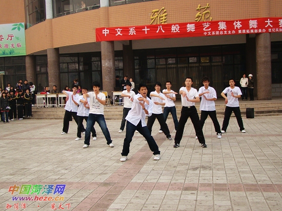 12月10日,菏泽学院中文系举行十八般“舞”艺集体舞大赛,希望通过本次活动,使同学们意识到团结的力量,增进同学间的相互理解和信任,增强班级凝聚力。大学生分别以“爱”、“青春”、“责任”、“友谊”、“成长”、“征途”为主题,用舞蹈或情景舞剧等来诠释舞蹈内涵。