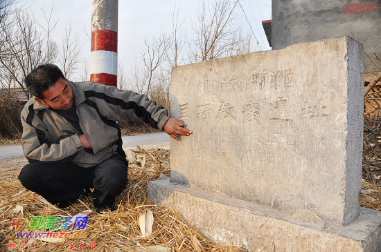 1977年,“巨野教案遗址”被省政府列为省重点文物保护单位,并在村子的主街道上立起了一块石碑。赵新安擦了擦石碑上的尘土,正面的字迹非常清晰,但碑后的碑文已经模糊不清。他遗憾地表示:“目前村里只保存有古井和这块石碑了。县文物管理所曾在村里收集到一块教堂木门,是寻常的枣木门。”