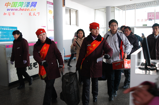 23日上午,菏泽汽车总站“小红帽爱心使者”忙坏了,有的在收集春运客流信息,有的在为乘客提包,有的在答复乘客咨询。据悉,春运期间,菏泽汽车总站开展“春运我帮你、爱心伴旅程”活动,当乘客遇到困难、需要提供服务时,可以找“小红帽爱心使者”。