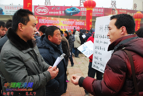 “年满18周岁,无需工作经验”、“月薪1500元加提成”、“包食宿,工资面议”……在2月10日的市人力资源市场和2月11日的全市2011“春风行动”启动仪式暨牡丹区春季就业招聘会上,人流熙来攘往,吆喝声此起彼伏。然而,在数以千计的人流量中,招工者的热情与应聘者的冷淡却形成了鲜明对比。