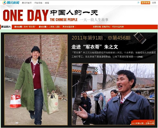 记者了解到,《中国人的一天》由腾讯网主办,每天介绍一名普通中国人的故事。朱之文的故事是由“金泰山”、“逮啥拍啥”、“图钉”、“煽风点火”四名菏泽网友制作上传的。网友“逮啥拍啥”告诉记者,朱之文成名后,他们多次到朱之文家中拍摄,并及时上传到网上与广大网友分享。