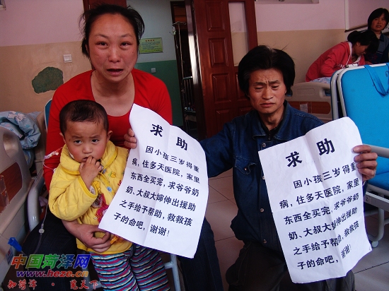 贫困夫妻靠拣破烂、跪讨为“大头儿”治病;医生、病人家属捐钱相助