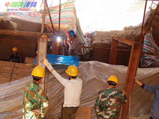 中国菏泽网消息 昨日上午,在菏泽元代沉船发掘现场,工作人员开始焊接用以起吊船底的连接架,沉船起出工作进入关键阶段。