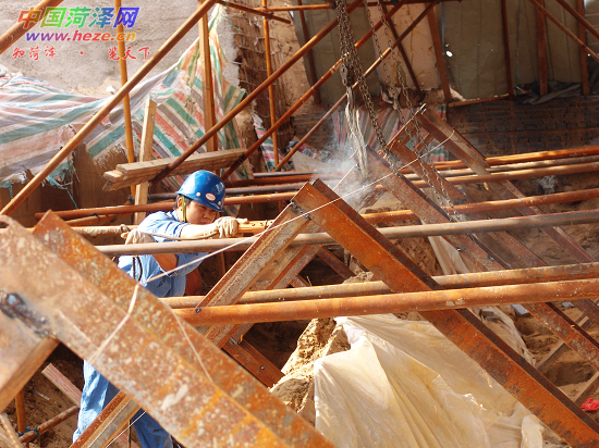 昨日,记者在发掘现场看到,八个连接架已根据原来设计的角度基本调整到位,连接架一侧槽钢与船底倾斜角度吻合,将其牢牢托住,工人正在对连接架进行固定焊接。