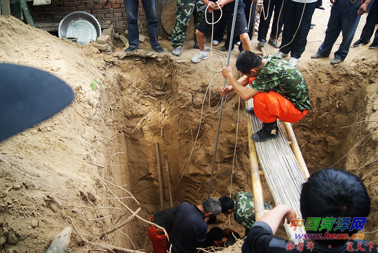 15日9时18分,接到报警后,10名消防指战员赶赴现场。在老太太的小院里,消防人员了解得知,落水者已年届九旬,机井深20余米、直径仅0.5米,老人头部朝上浮在井水中。由于井太深而井口太窄,消防官兵无法直接下井救人。现场指挥员和民警迅速制定营救方案,先设法把绳索套住落井老人的臂膀,防止其继续下沉;同时向井内输入氧气,争取救援时间;然后调用挖掘机在井的四周挖土,把涵管去掉后再进行营救。