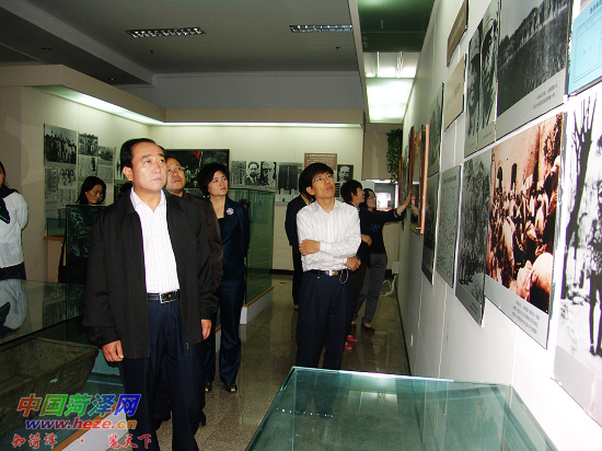 5月21日至22日,在山东省作协会副巡视员、创作室主任杨发运(左一)的带领下,山东省作家协会采风团一行16人来我市采风,采风团先后到冀鲁豫边区革命纪念馆、李荣海美术馆、菏泽大剧院、市博物馆、牡丹区毛泽东像章纪念馆、郓城工业园区及水浒旅游城采访。通过对炮火纷飞的战争年代的回顾和采访城乡日新月异的变化,来创作一批讴歌中国共产党丰功伟绩的作品,迎接建党90周年。图为采风团参观冀鲁豫边区革命纪念馆。