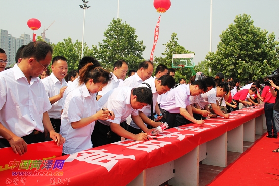 6月13日,全市“食品安全宣传周”启动仪式分别在牡丹区体育场和牡丹广场举行,来自食药监、卫生、工商、畜牧等部门及食品生产企业的千余名代表,签名倡议“人人关心食品安全,家家享受健康生活”。