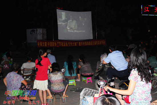 7月16日晚,在市中华路中段市工商局家属院北侧,市民正在观看“红色电影”。当晚,“百花放映·红色之旅”公益电影惠民活动正式启动,接下来一个月将在全市城乡放映电影800场。据了解,为纪念建党90周年、辛亥革命100周年,中国文联、中国影协携手中国银联,在17省份90个地市399个县2.5万个村开展“百花放映·红色之旅”公益电影放映和慰问演出活动。