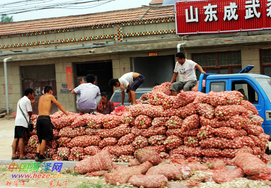 7月15日上午,记者在成武县大田集镇发现,乡间公路上不时有满载大蒜的农用三轮车经过,有的车上还装有台秤。在346省道两侧,几处大蒜收购点十分热闹,不时有农用车将满车的大蒜运到这里。大蒜虽然卖出了,但蒜农的脸上却没有一丝喜悦。