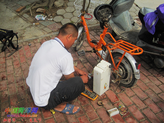 7月30日的第二场雨下过后,记者来到菏泽天香公园附近一修车店,看到店前停放着10多辆电动车,修车师傅告诉记者这些车都是在雨中行驶时出的问题,大都是线路或电机烧毁。这位师傅还说,第一场雨过后的第二天,他修了60多辆电动车。