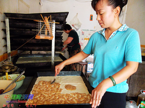 中国菏泽网消息 和面、做饼、摊馅、放入烤箱……8月23日中午,记者走进张丽伟的掉渣饼肉烧饼店,见她和一名员工正在忙碌着。