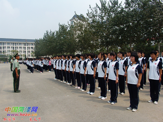 8月29日上午,菏泽一中高一新生在进行队列训练。从8月28日下午开始,菏泽一中邀请驻菏武警官兵对2011级高一新生进行为期一周的军训,军训内容以队列训练和宿舍内务整理为主,旨在提高同学们的身体素质和独立生活能力,增强同学们的组织纪律性。