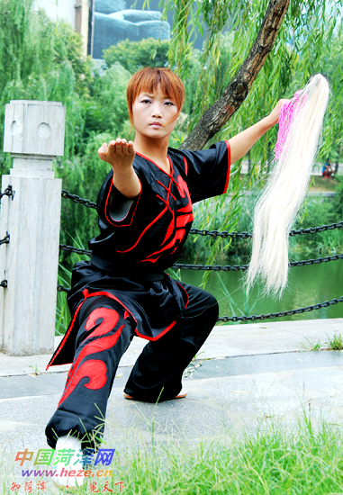 今年25岁的张芹芹家住牡丹区东城办事处双河社区,从小在热衷武术的母亲影响下走上习武的道路。从8岁那年开始,她到离家不远的一个武馆学习武术。每天别的孩子放学回家玩乐时,她都要到武馆参加训练,一直到晚上十点才能回家。当时,许多同伴听说她练武后,渐渐疏远了她,武术几乎成了她童年的唯一玩伴。