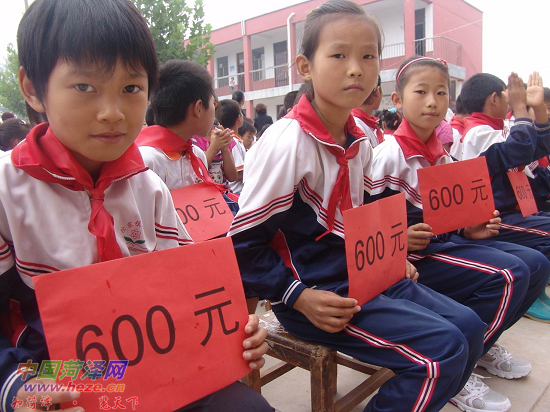 9月5日,团市委、市希望工程办公室在单县徐寨镇明德小学举行救助金发放仪式,向该县101名贫困小学生每人发放了600元救助金。这笔救助金是在外工作的单县籍爱心人士徐连香捐赠的。