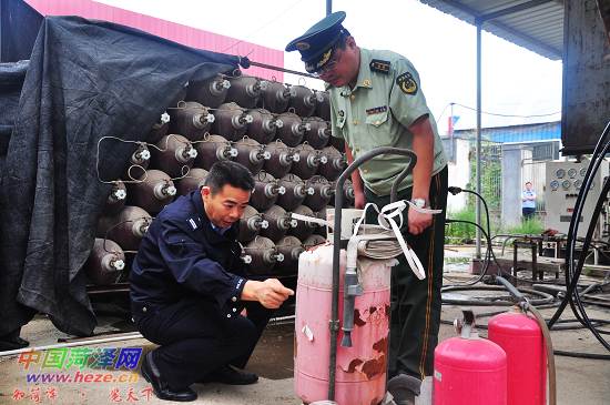 该加气站位于曹县汽车站东5公里菏商路旁。市消防支队接到举报后,联合曹县消防大队与当地派出所执法人员,到现场进行了检查。检查发现,这家加气站没有合法手续,属无证经营。