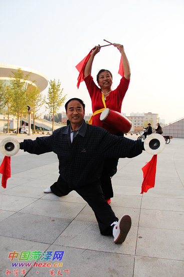 “咚恰咚恰,咚咚恰……”一个秋日的早晨,在菏泽牡丹广场一角,一对老夫妻一个打腰鼓一个打铜镲,配合默契,引来众多市民驻足欣赏。原来,这两位老人是牡丹区威风锣鼓艺术团的搭档兼教练,经常活跃在街道和社区的老年协会里,为丰富老年人文化生活奉献着自己的力量。