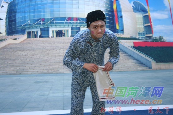 佝偻的背、蹒跚的步伐、说起话来咳嗽不止……由19岁年轻小伙扮演的拿着手绢、满场摔倒再爬起来的瘪嘴老太太,让人忍俊不禁;吹笛子、打快板、口技模仿等多项才艺表演更让他在舞台上大放异彩——