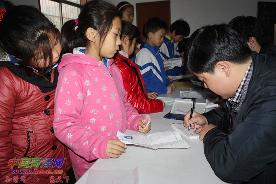11月16日,在市实验小学南校区,学生们正在争相报名加入牡丹晚报小记者团。三年级学生王昌民兴奋地说:“去年我就想报名,老师和家长说我年龄太小,现在我上三年级了,家长和老师都支持我加入小记者团。”小学生刘晗说,他姐姐就是小记者,参加了很多活动,还在牡丹晚报上发表了作文,他也要像姐姐一样成为小记者。
