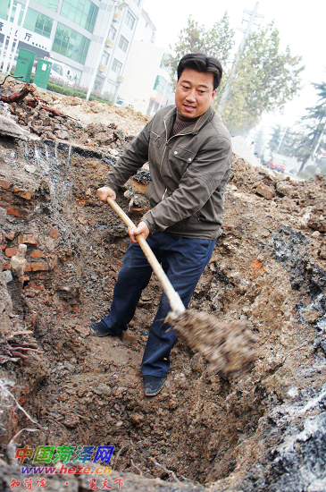 11月15日下午,在市长江路和解放大街交叉路口西北角,记者见到了正在现场抢修管道的刘保启。此时,他已经连续工作了13个小时。他告诉记者,当日凌晨1点多,他接到抢修电话便立即和另外两名工友驱车赶到现场,关闭阀门,展开抢修。