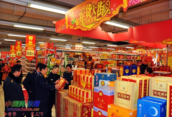 春节将至,为维护节日期间的市场秩序,让群众吃得放心,1月6日,牡丹区公安、工商部门对辖区内农贸城、药店、超市进行集中检查。牡丹公安分局经侦大队大队长段强介绍,为使广大人民群众过一个祥和的新春佳节,公安机关将严厉打击制造销售假冒伪劣食品的行为。