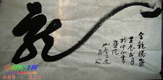著名书法家谢孔宾挥毫泼墨写的“龙”字,参展牡丹区龙年说龙活动