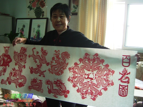 在葛秀英的家里,她拿出了精心剪的《百龙图》作品。随着这幅长10米、宽50厘米长卷的徐徐展开,一条条红色小龙一一呈现出来,让人惊叹不已。