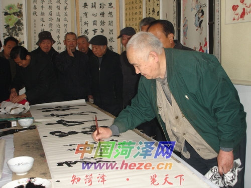 4月2日,牡丹区北城老年文化活动中心春意盎然。上午九时,由牡丹区老年书画协会东城暨北城分会联合举办的喜迎党的十八大笔会拉开序幕,30余名会员挥毫泼墨,集体精心创作了50米书法长卷,和一幅幅质量上乘的书画作品,展示了老年书画会员良好的精神风貌和艺术水平。