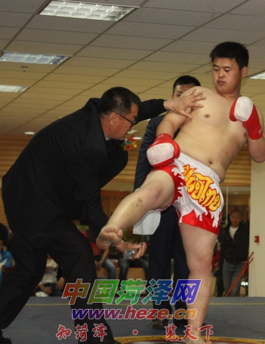 当日下午,苏长虎和对手的比赛开始后,仅过去50多秒,他便抓住机会起边腿击中对方头部,KO获胜。当主持人宣布苏长虎获胜后,苏长虎豪情万丈地喊出:“我要向雅桑克莱发出挑战!我有信心战胜他!”这个菏泽小伙子的豪言壮语让在场的菏泽武林人士大声叫好,两名菏泽的武林老前辈还当场向苏长虎指导搏击的一些技巧,和应对泰拳的方法。