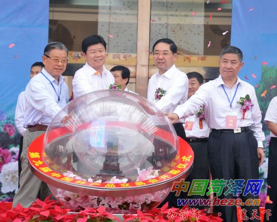 山东省人民政府副省长贾万志和菏泽市委书记、市人大常委会主任赵润田共同启动水晶球。