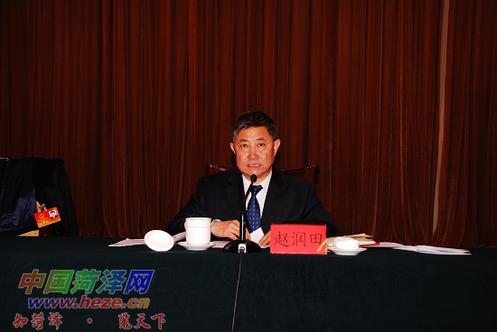 赵润田指出,菏泽过去5年的发展是山东的一个缩影,也印证了政府工作报告的成绩总结部分。五年来,菏泽主要经济指标增幅一直位居全省和周边9市前列。同时,民生状况持续改善,市直和县区机关事业单位连续6年上调工资,有的县区五年内上调了12次,人均翻了一番多。企业退休人员养老金及城乡低保、社会救助、优抚金标准多次提高,人民群众在发展中得到了越来越多的实惠。全市继续呈现出经济快速发展、社会和谐稳定、人民群众安居乐业的良好局面。总的来说,过去的五年,是菏泽爬坡的五年,也是大丰收的五年。这些成绩的取得,得益于科学发展观的正确指引,得益于省委、省人大、省政府、省政协各位领导和省直各个部门对菏泽的亲切关怀、大力支持,得益于兄弟市的帮扶带动,也得益于全市上下团结奋斗,扎实苦干。