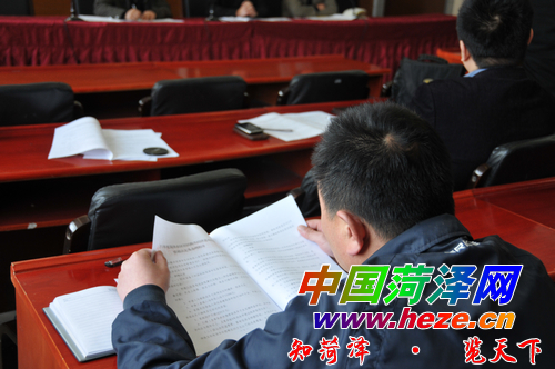 与会者阅读《2013年度菏泽市区居民购买经济适用住房资格认定及办理程序》