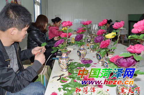 日前,菏泽瑞璞牡丹工艺品公司的工作人员正在制作牡丹不凋花。郜玉华 李得安 摄