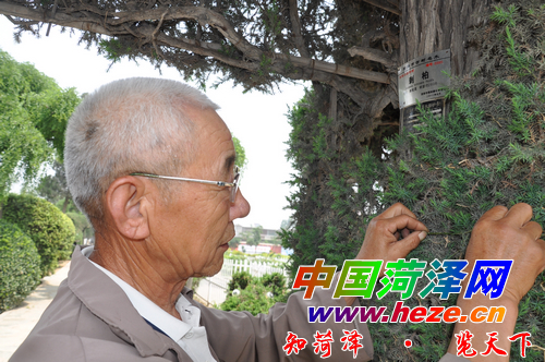 接着又来到一座写有“古今园”三个字的牌坊。记者抬头细看,上面有市园林绿化管理处所去年挂的编号牌,上写“刺柏,树龄120年”,果然是历史悠久的松编。