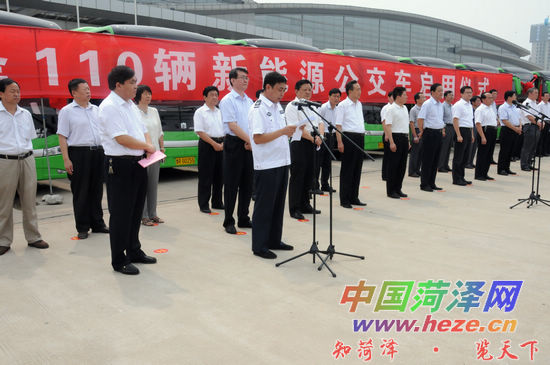 中国菏泽网消息 (记者 安琪) 8月8日上午,我市110辆LNG新能源公交车在中国林展馆举行启动仪式并正式投入运营。省交通运输厅副厅长高洪涛,省交通运输厅运管局局长江成,省交通运输厅运管处处长王博,省交通运输厅公安处处长赵存柱,省交通运输厅人事处副处长韩明,省交通运输厅运管局办公室主任王范聪;市委副书记、市长孙爱军,市委常委、副市长张毓华,市人大副主任丁志刚出席启动仪式。省交通运输厅副厅长高洪涛,市委常委、副市长张毓华发表重要讲话。