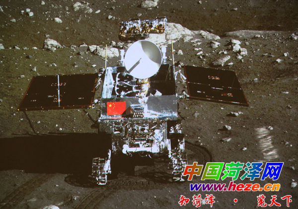 12月15日晚,正在月球上开展科学探测工作的嫦娥三号着陆器和巡视器进行互成像实验,“两器”顺利互拍,嫦娥三号任务取得圆满成功。未来几天,在进行科学探测的同时,“玉兔”号月球车还将绕陆器继续行驶,从不同角度与着陆器多次互拍。这是嫦娥三号着陆器上的相机拍摄的“玉兔”号月球车。新华社记者王建民摄