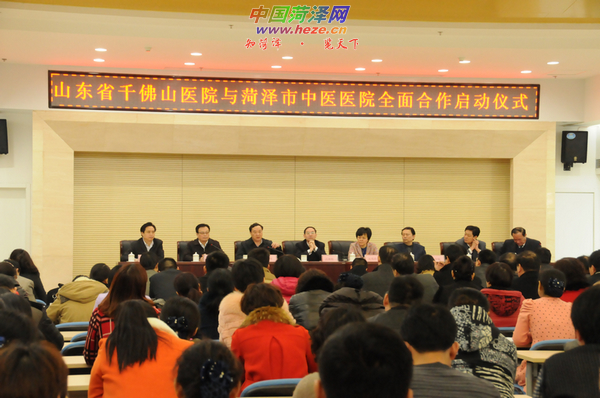 中国菏泽网消息 (记者 恒 之)2月24日,山东省千佛山医院与我市中医院全面合作启动仪式在我市中医院成功举行。山东省中医药管理局局长武继彪,菏泽市人民政府副市长黄秀玲,菏泽市人民政府副秘书长黄高潮,菏泽市卫生局局长闫传银、副局长张佩宪,山东省千佛山医院孙洪军院长和市中医院郝敬忠院长等出席仪式。仪式由菏泽市人民政府副秘书长黄高潮主持。