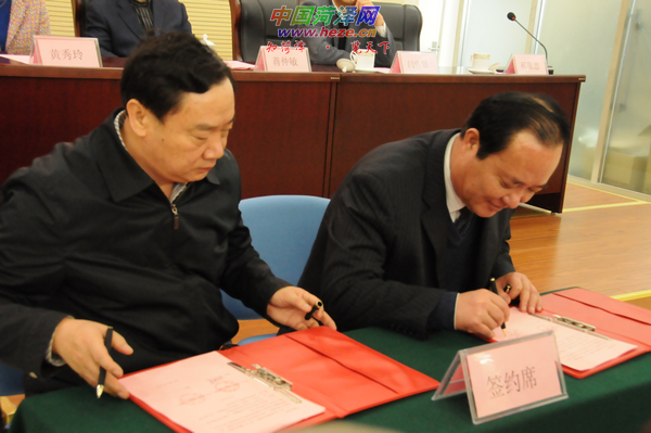山东省千佛山医院院长孙洪军与市中医院院长郝敬忠签订合作协议书