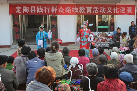 中国菏泽网消息 为认真践行党的群众路线教育实践活动,3月27日上午,定陶县两夹弦剧团一大早就赶到仿山镇游集村,在街中心人员集中地方“安营扎寨”。其间,剧团为群众演出了精心编排的以反映农民索要工资为题材的情景剧《将心比心》、以凸显尊老孝道为主题的两夹弦短剧《砖头记》和以体现优良家风、村规的传统剧,深受广大干部群众的欢迎。 记者 仝志华 通讯员 李怀鹏 摄